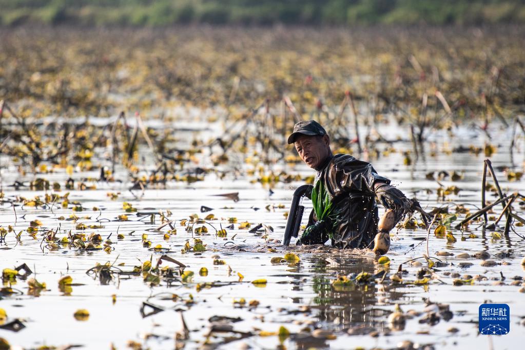 近日,湖南省益陽市南縣中魚口鎮(zhèn)種植的蓮藕迎來豐收,數(shù)十名藕農(nóng)在荷塘中抓緊采挖蓮藕,日產(chǎn)量3噸左右。據(jù)了解,中魚口鎮(zhèn)種植蓮藕5000余畝,大力發(fā)展藕、蝦、魚套養(yǎng),是當?shù)貍鹘y(tǒng)種植產(chǎn)業(yè),產(chǎn)品主要銷往廣東、廣西以及湖南長沙等地。
