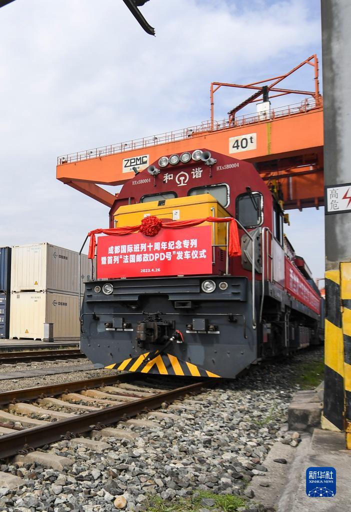 滿載小家電、數碼產品、定制服裝等跨境電商貨物的首列法國郵政DPD公司定制的“法國郵政DPD號”中歐班列4月26日在成都國際鐵路港發車,班列將在10天內抵達波蘭馬拉舍維奇,并于4天內完成向歐洲各地分撥貨物。