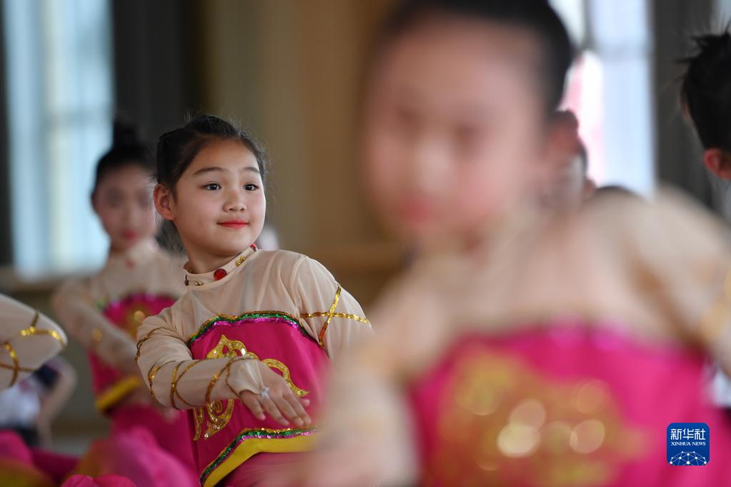 4月26日,在敦煌市西關(guān)小學(xué),舞蹈社團(tuán)的學(xué)生在課后服務(wù)時(shí)間練習(xí)敦煌舞。