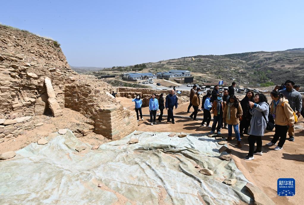 4月26日,外賓在陜西石峁遺址皇城臺遺址參觀調研。