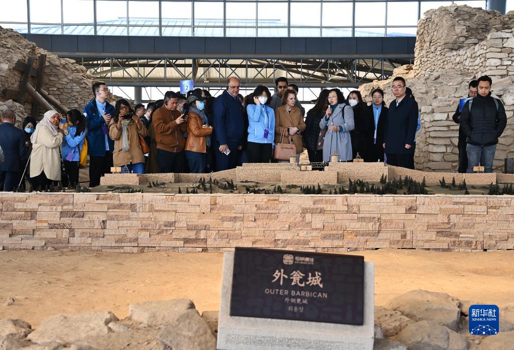 當日,參加亞洲文化遺產保護聯盟大會的多國代表、東盟成員國來賓和相關國際組織代表來到陜西石峁遺址實地參觀調研文化遺產保護情況。