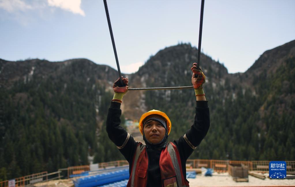 4月26日,中鐵十一局施工人員在同賽公路扎毛河特大橋項目現場作業。