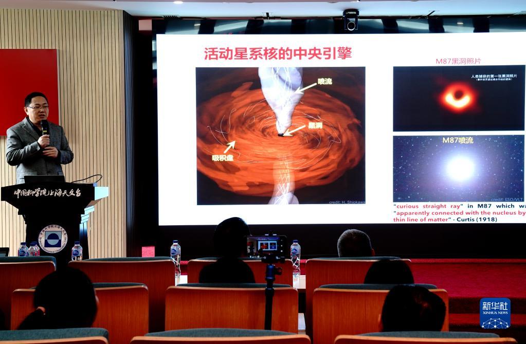 4月26日,中科院上海天文臺(tái)研究員路如森在新聞發(fā)布會(huì)上介紹觀測(cè)成果。新華社記者 張建松 攝