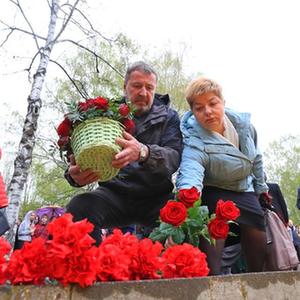 4月26日,人們在白俄羅斯首都明斯克舉行的切爾諾貝利核事故37周年紀念活動上獻花。