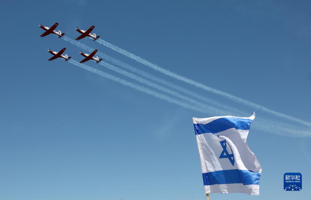 當(dāng)日,以色列舉行飛行表演,慶祝建國(guó)75周年。