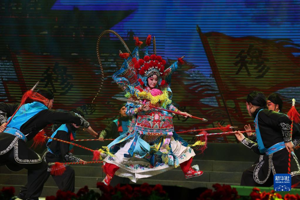 4月26日,河南省豫劇院青年團的演員在開幕式演出現(xiàn)場表演豫劇《大破天門陣》片段。