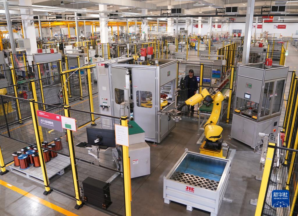 4月27日在浙江杭州市蕭山區拍攝的杰牌智能傳動未來工廠車間生產內景。