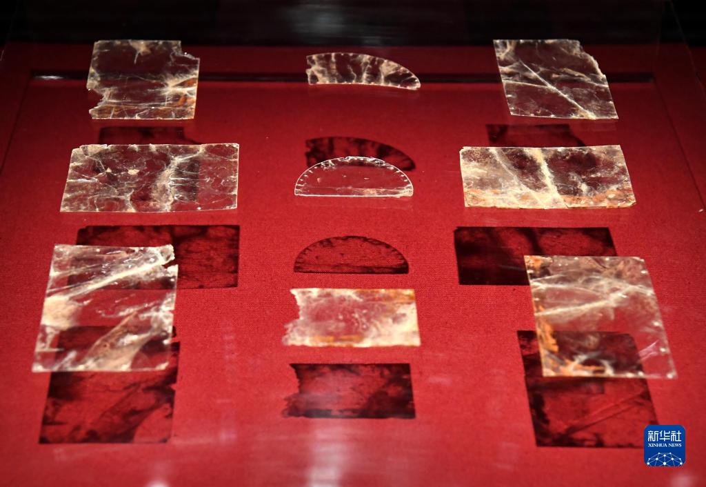 這是曹操高陵遺址博物館內(nèi)展出的云母片(4月22日攝)。