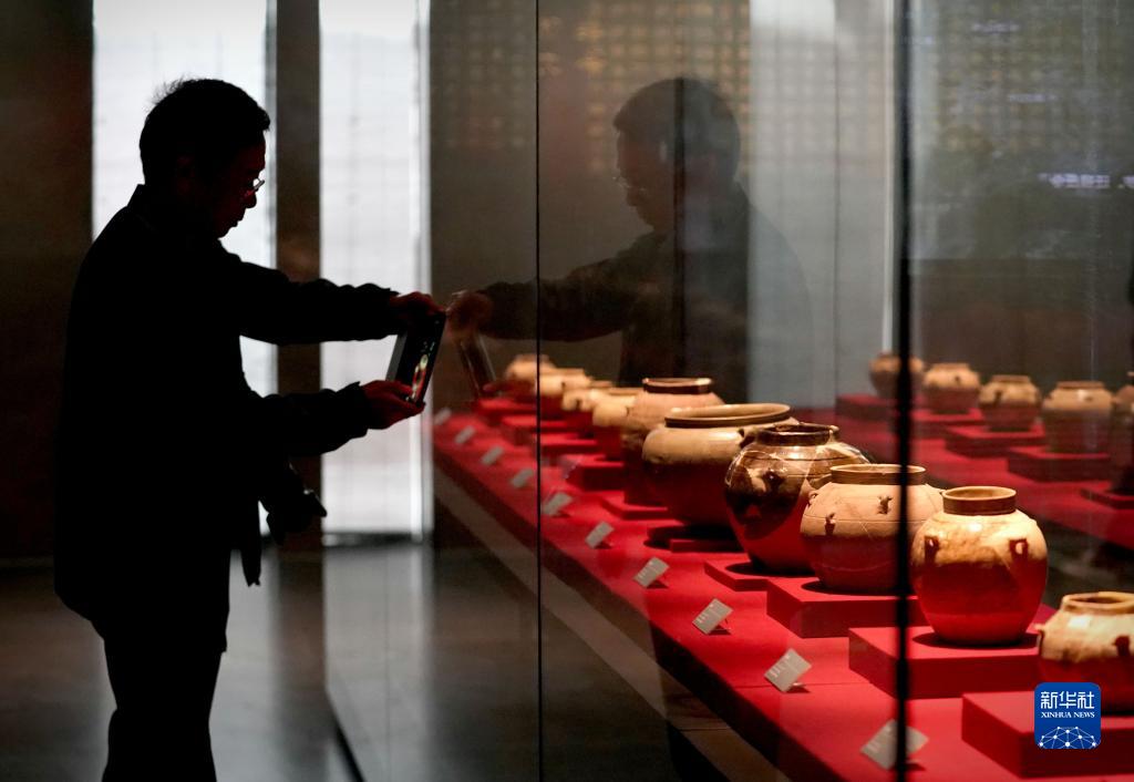 4月27日,參觀者在曹操高陵遺址博物館內(nèi)拍攝展品。