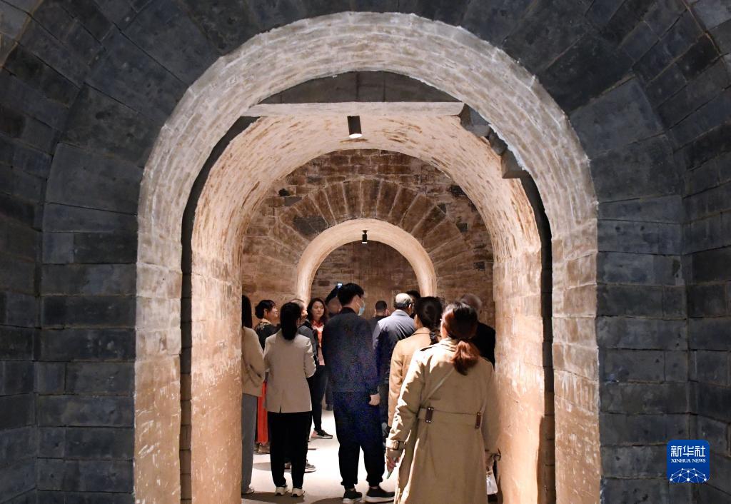 4月27日,參觀者在曹操高陵遺址博物館內參觀。
