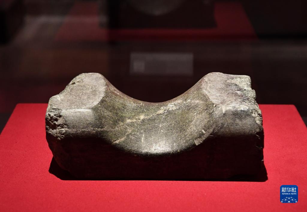 這是曹操高陵遺址博物館內展出的“魏武王常所用慰項石”石枕(4月22日攝)。