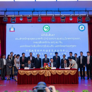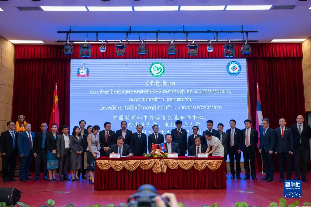 中國教育部中外語言交流合作中心、廣西民族大學、老撾國立大學三方聯合培養老撾本土中文教師項目簽約儀式26日在老撾國立大學孔子學院舉行。