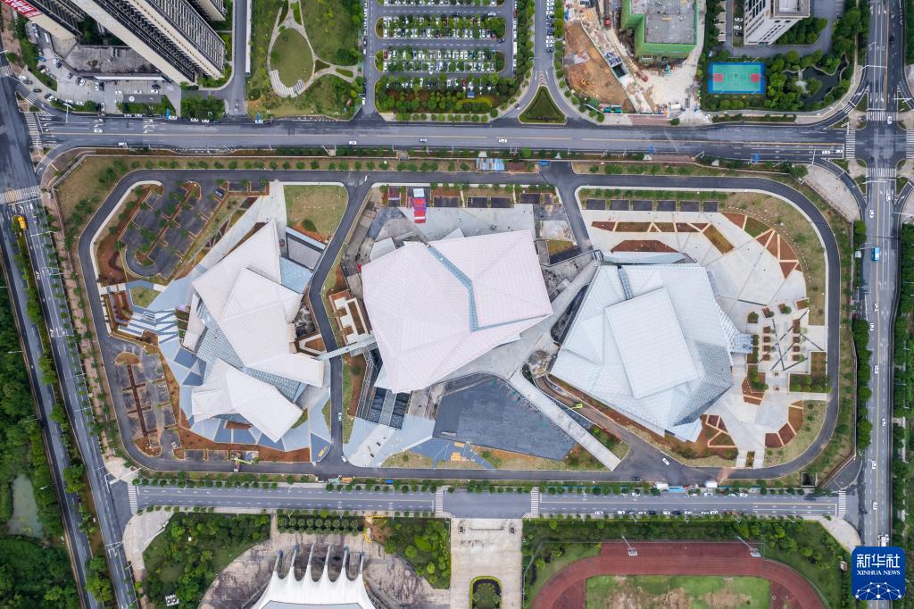 這是4月28日拍攝的建設中的郴州市文體中心(無人機照片)。