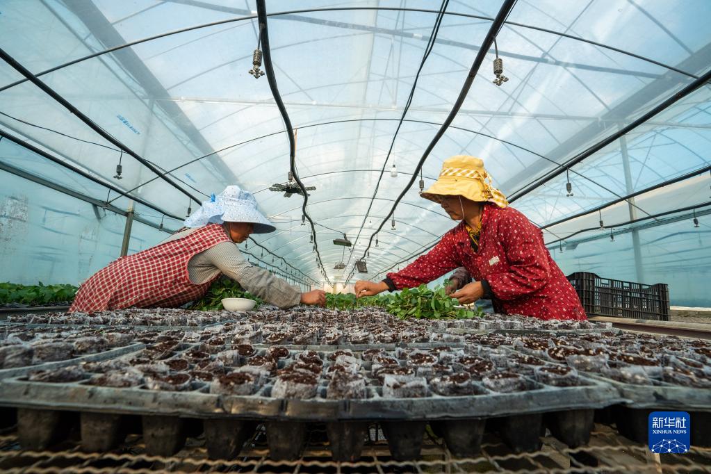 工人在云南錦科花卉工程研究中心進(jìn)行玫瑰扦插育苗(4月3日攝)。