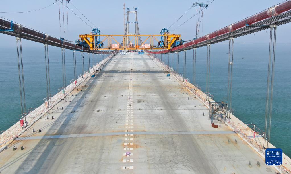 這是4月28日拍攝的深中通道伶仃洋大橋橋面(無人機照片)。