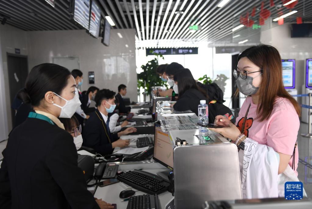 4月28日,旅客在廣州琶洲港澳客運口岸托運行李,準備前往香港國際機場。