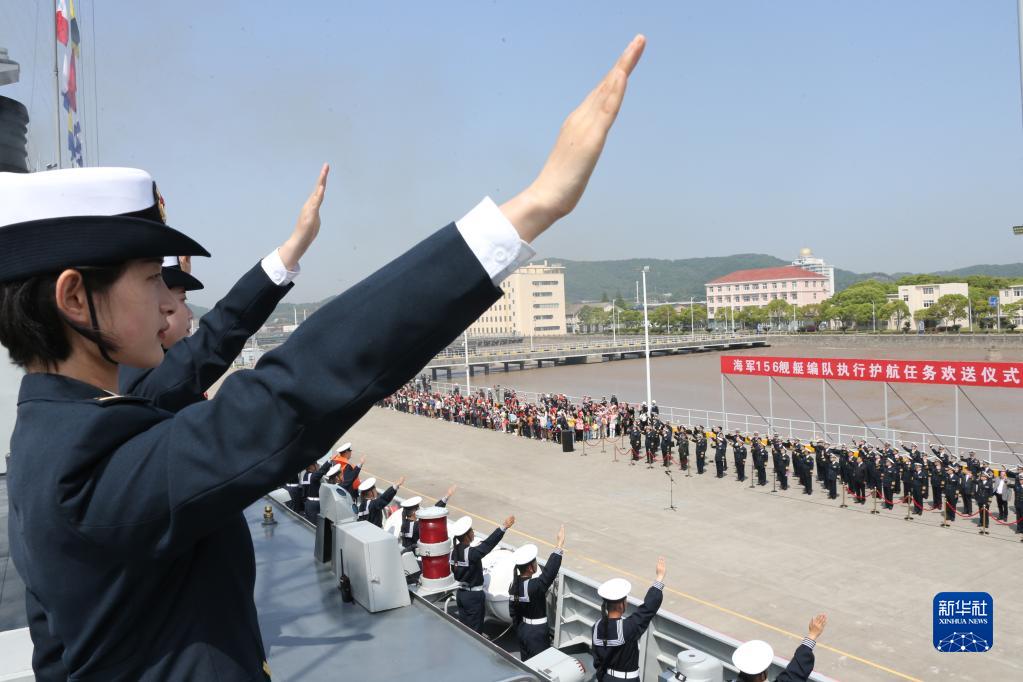 4月28日,中國海軍第44批護航編隊從浙江舟山某軍港解纜起航,官兵們揮手告別。