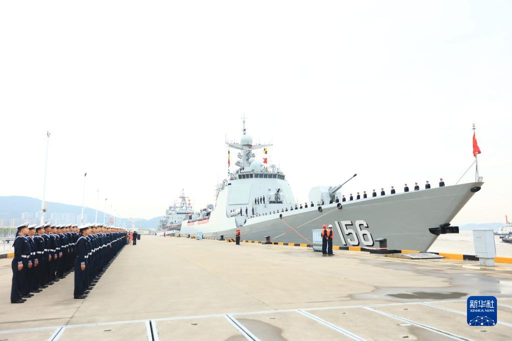 4月28日,中國海軍第44批護航編隊從浙江舟山某軍港解纜起航。這是編隊中的導彈驅逐艦淄博艦。