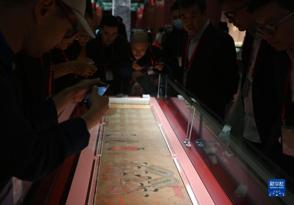 4月28日,嘉賓在北京故宮博物院觀看唐代閻立本《步輦圖》。