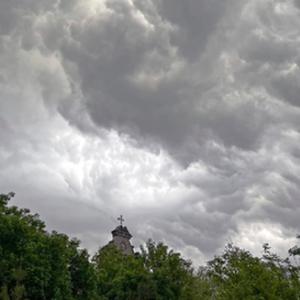 這是4月28日拍攝的北京市宣武門教堂上空的云層(手機照片)。