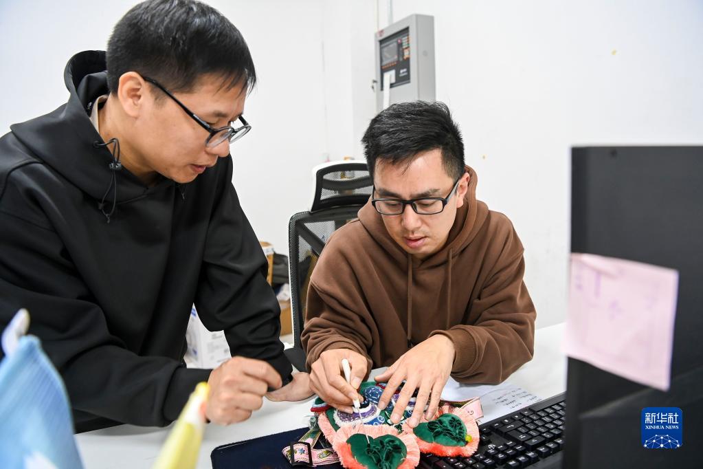 4月26日,何繼良(左)與蒙揚文在廣西桂林市龍勝各族自治縣的一處生產車間討論如何改進生產工藝。