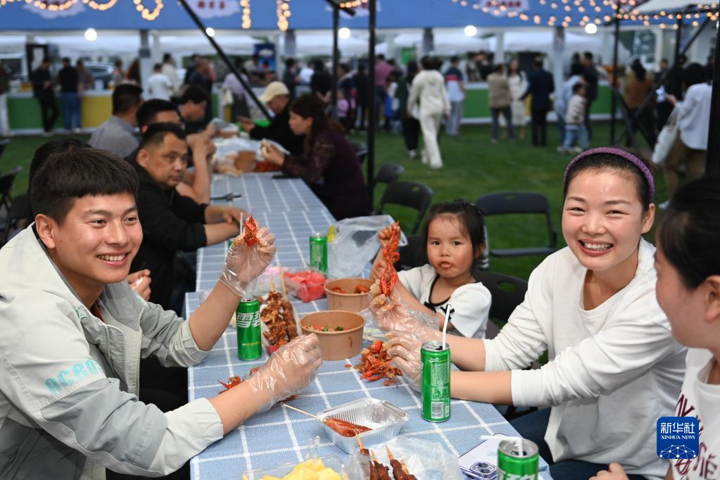 4月28日,游客在品嘗石淙清水小龍蝦。