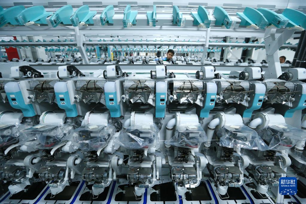 4月29日,技術(shù)工人在山東省青島市即墨區(qū)即發(fā)龍山工業(yè)園的一處數(shù)字化智能紡紗工廠安裝生產(chǎn)設(shè)備。
