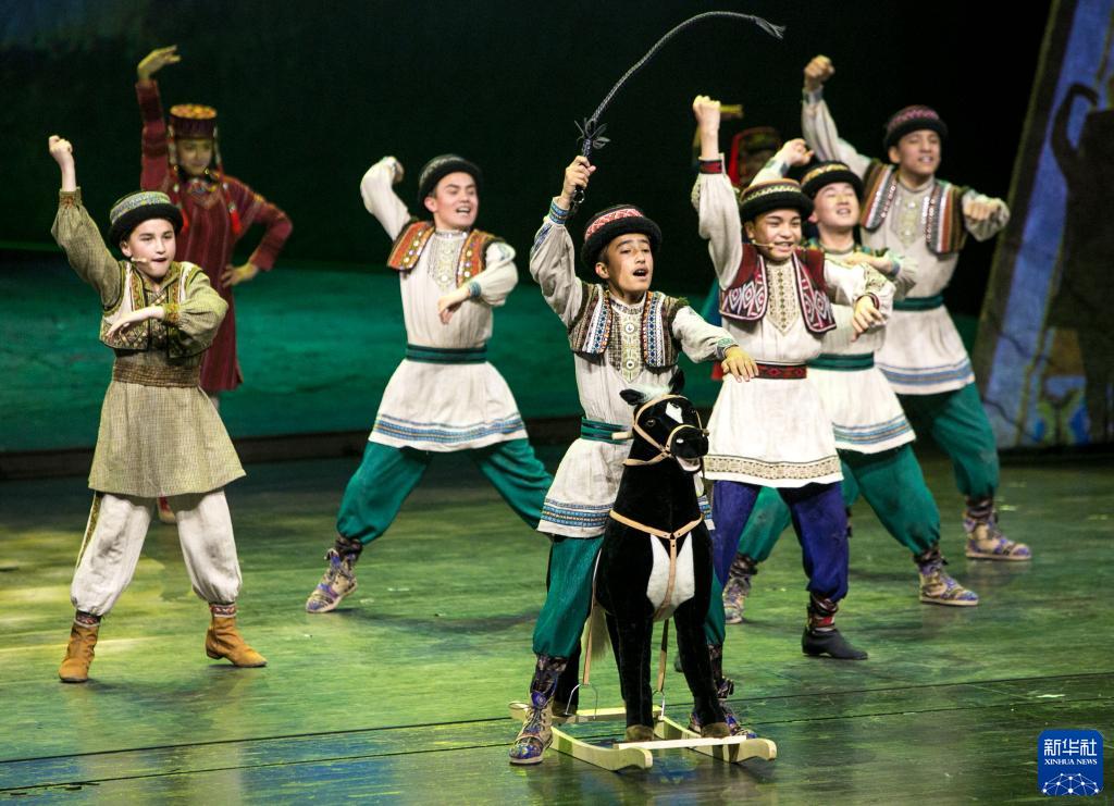 4月29日,在北京保利劇院,演員在音樂劇《拉齊尼·巴依卡》第一幕《帕米爾少年》中表演。