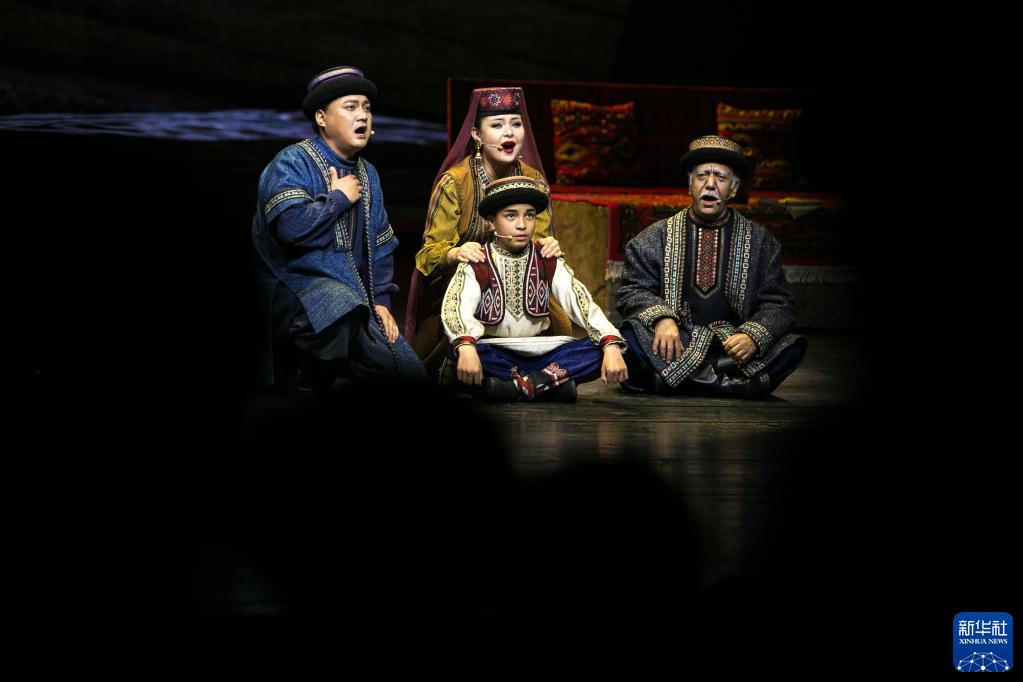 4月29日,在北京保利劇院,演員在音樂(lè)劇《拉齊尼·巴依卡》第一幕《帕米爾少年》中表演。