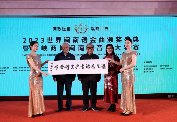 “2023世界閩南語金曲大獎”由國務院臺灣事務辦公室交流局、福建省人民政府僑務辦公室、福建省文學藝術界聯合會、福建省人民政府駐北京辦事處、福建省歸國華僑聯合會共同指導,世界閩南語金曲頒獎盛典暨海峽兩岸閩南語音樂大獎賽組委會主辦,廈門陳飛閩南文化產業有限公司、陳飛(福建)文化傳媒有限責任公司承辦。將于今年5月面向全球啟動報名,在中國廈門、漳州、泉州、港澳臺地區,以及新加坡、馬來西亞、菲律賓、印尼、美國等地設置12個賽區。賽事對參賽者不設任何限制,只要熱愛音樂,喜歡閩南語歌曲,都可以唱給世界聽。5月-6月面向全球報名和作品征集,7月-8月進行全球初選及全球50強選拔賽,9月開啟晉級賽,從晉級賽中脫穎而出的10強選手進入總決賽。總決賽暨頒獎盛典將于年底舉行,現場決出冠亞季軍,同時頒出面向世界閩南語歌壇的諸多重量級金曲獎獎項,授予在閩南語音樂創作與演唱中做出突出貢獻的藝術家和藝術新秀。