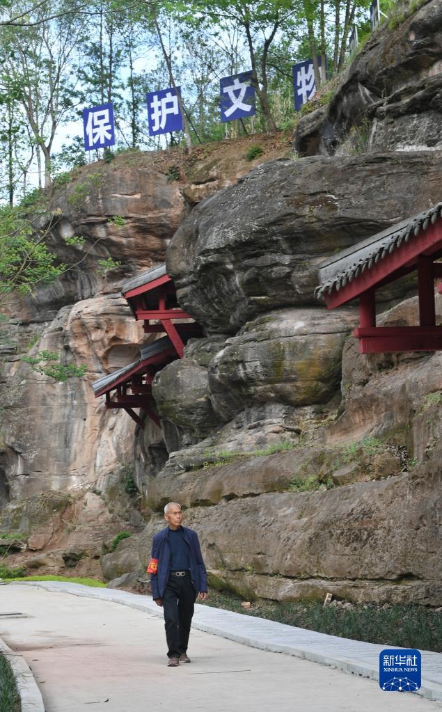 4月3日,吳忠富在臥佛院內巡查。