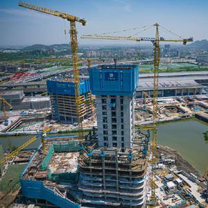 4月30日,中建三局建設者在浙江紹興北站TOD綜合交通樞紐工程建設現場工作。