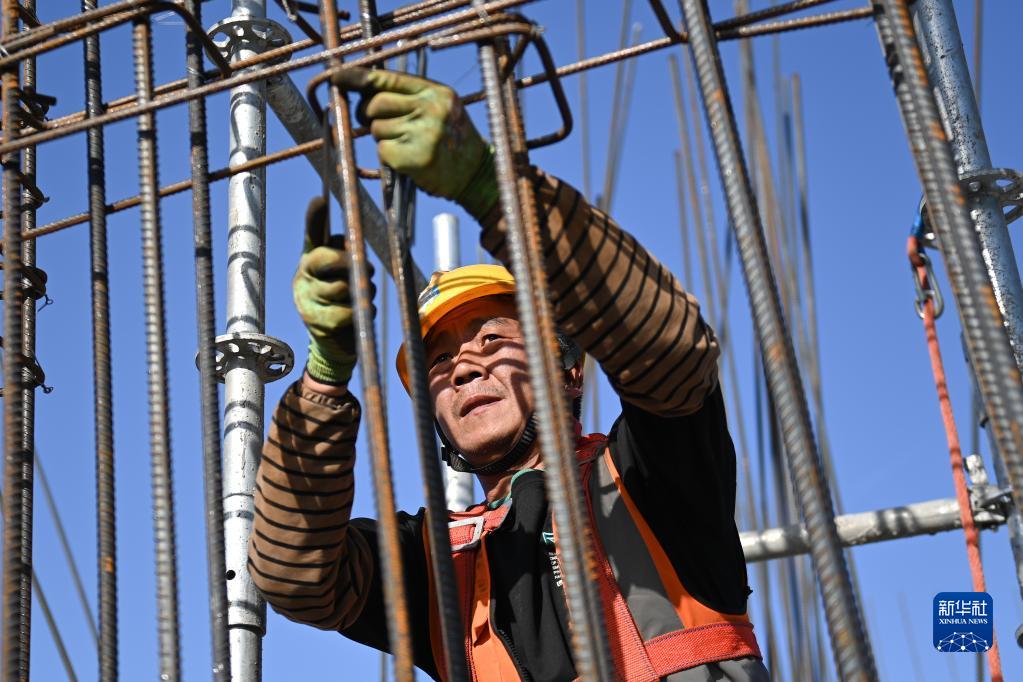 5月1日,在浙江省杭州市臨平區(qū)一個(gè)項(xiàng)目工地,中建三局的建設(shè)者在施工中。