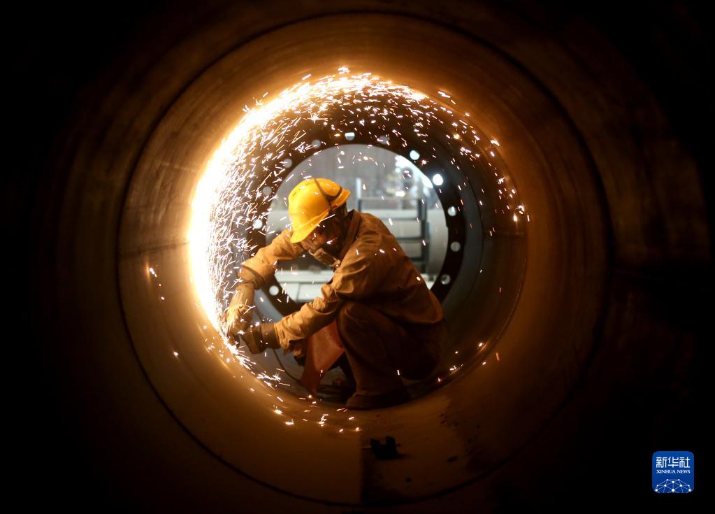 5月1日,在四川省眉山市一家鋼結構公司加工車間內,工人在趕制產品訂單。