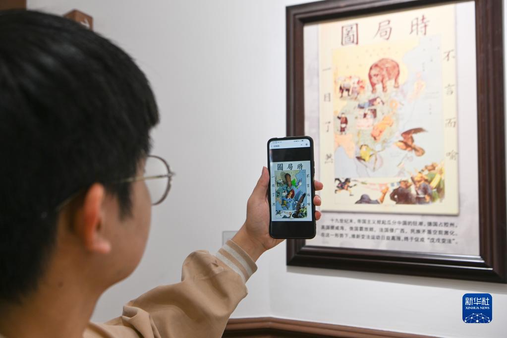 4月30日,游客在梁啟超紀(jì)念館內(nèi)參觀時(shí)使用智能設(shè)備進(jìn)行AR(增強(qiáng)現(xiàn)實(shí))互動(dòng)。