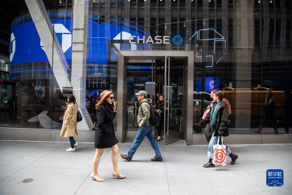 5月1日,在美國紐約,行人從一家摩根大通銀行前走過。