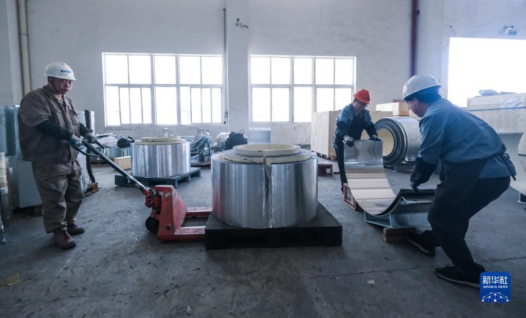 5月2日,在位于浙江省嘉興市秀洲區王店鎮的浙江振申絕熱科技股份有限公司聚氨酯車間內,工人在進行管托安裝工序。