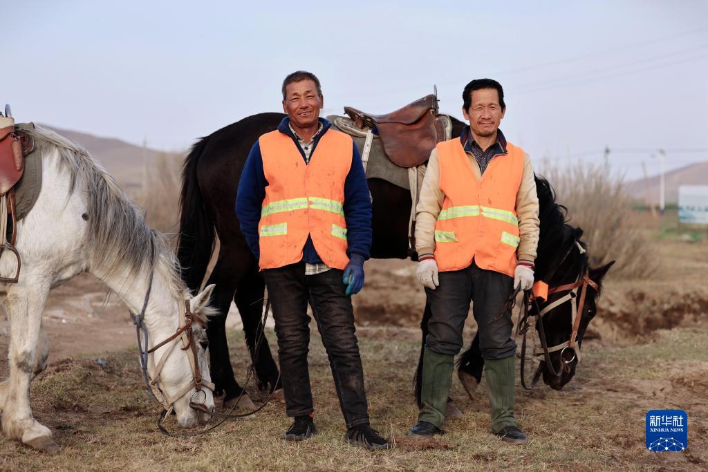 河北省承德市豐寧滿族自治縣大灘鎮扎拉營村的護林員趙世海(左)和羅金寶在海留圖國家濕地公園(5月2日攝)。