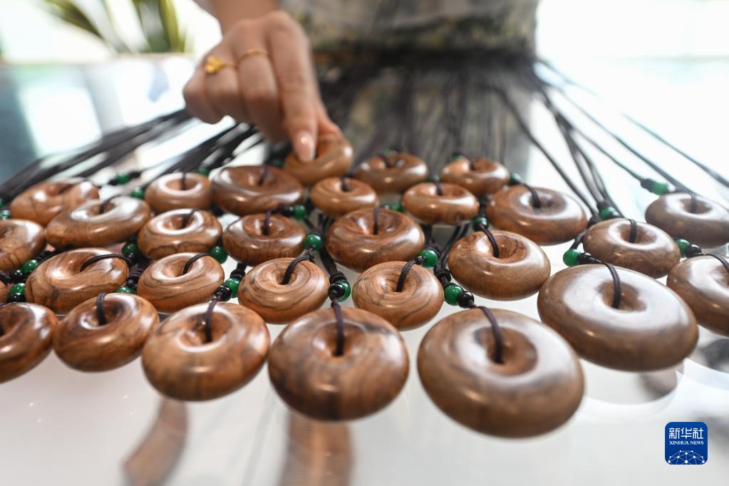5月1日在海南花梨谷文化旅游區(qū)文創(chuàng)中心拍攝的黃花梨文創(chuàng)產(chǎn)品。