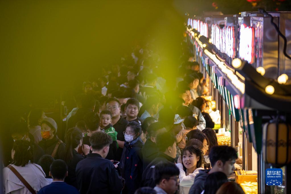 5月1日,游客在寧夏銀川市西夏區懷遠觀光夜市游覽。