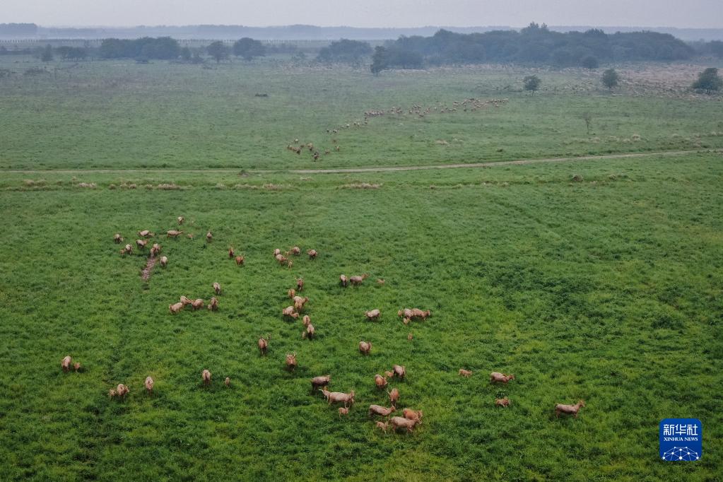 石首麋鹿國家級自然保護區(qū)成立于1991年,這里牧草豐富,濕地生態(tài)系統(tǒng)完整。30多年間,麋鹿種群繁衍擴散,逐漸形成了保護區(qū)、東升三合垸、小河楊波坦及湖南洞庭湖4個小種群,從最初引進的64頭發(fā)展到2500余頭,全部實現(xiàn)自然繁衍,恢復了野生習性。