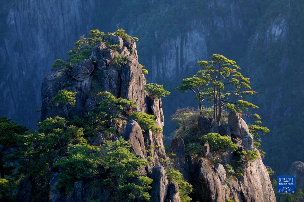 2022年11月24日拍攝的生長在峰頂和絕壁的黃山松。
