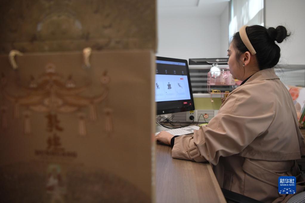 敦煌研究院文物數字化保護團隊的韓雪在查閱“數字敦煌”資源庫(4月25日攝)。