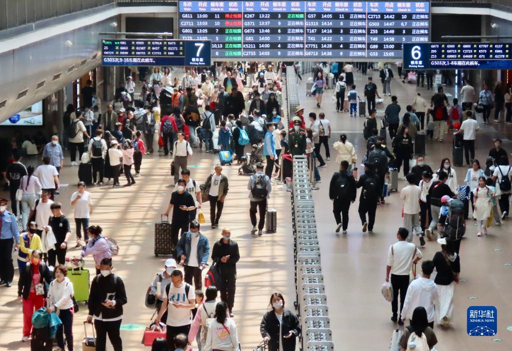 5月3日,旅客在北京西站準備乘車。