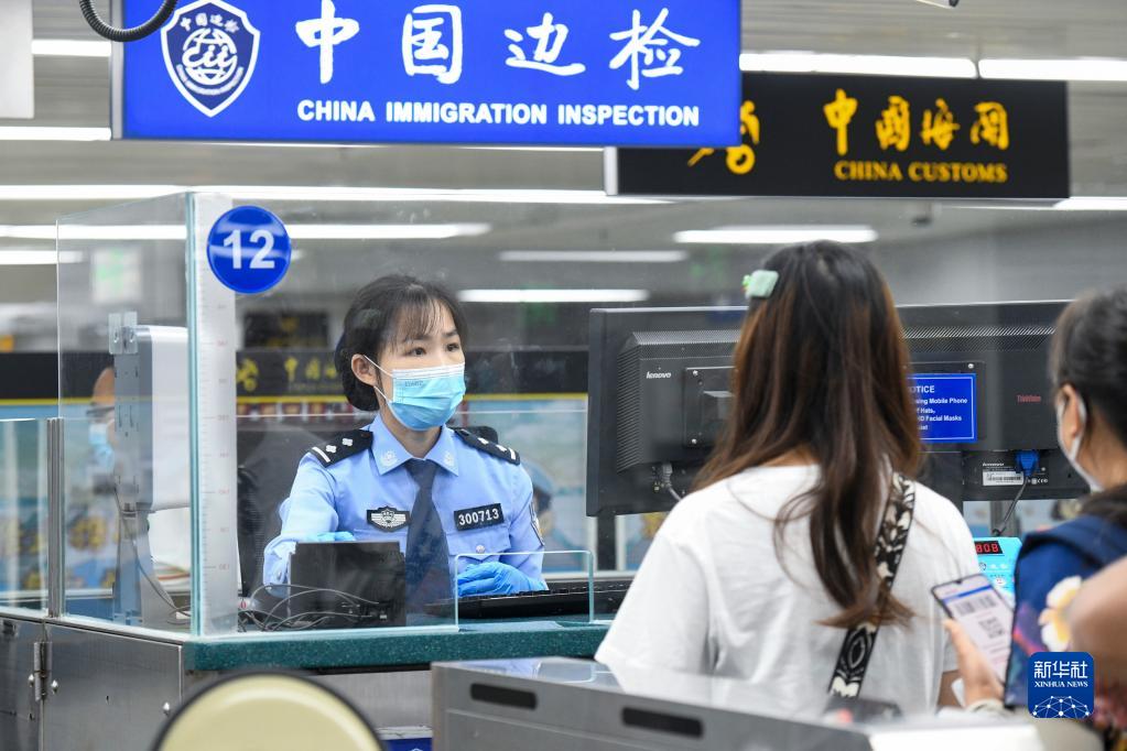 5月3日,深圳羅湖邊檢站民警為旅客辦理出境手續。