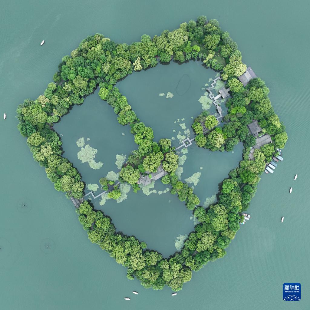 5月3日,游客在杭州西湖乘船游玩(無人機(jī)照片)。