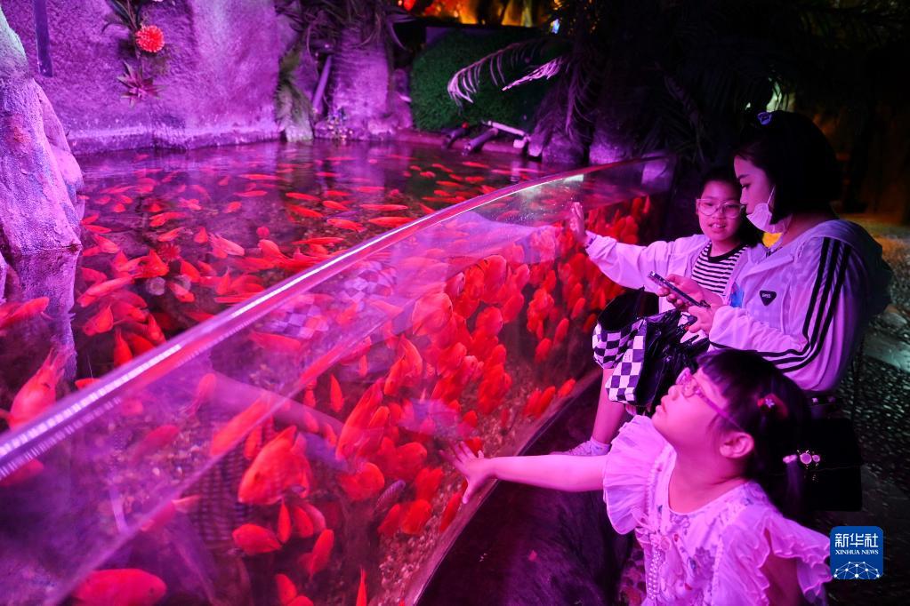 5月3日,游客在福州左海公園海底世界參觀。