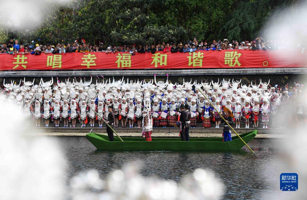 5月3日,人們?cè)谫F州省臺(tái)江縣參加苗族姊妹節(jié)對(duì)唱活動(dòng)。