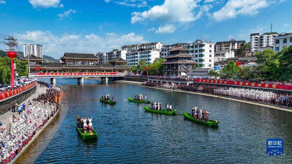 “五一”小長假期間,貴州省黔東南苗族侗族自治州臺江縣迎來一年一度的苗族姊妹節。頗具特色的盛裝游演、民族歌舞表演、苗家長桌宴、民族民間工藝品展示等系列活動吸引眾多游客前來觀賞游玩。
