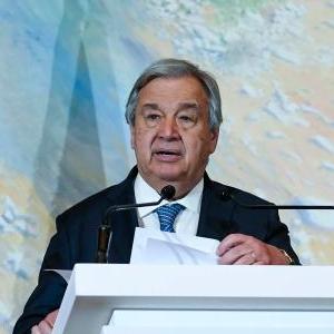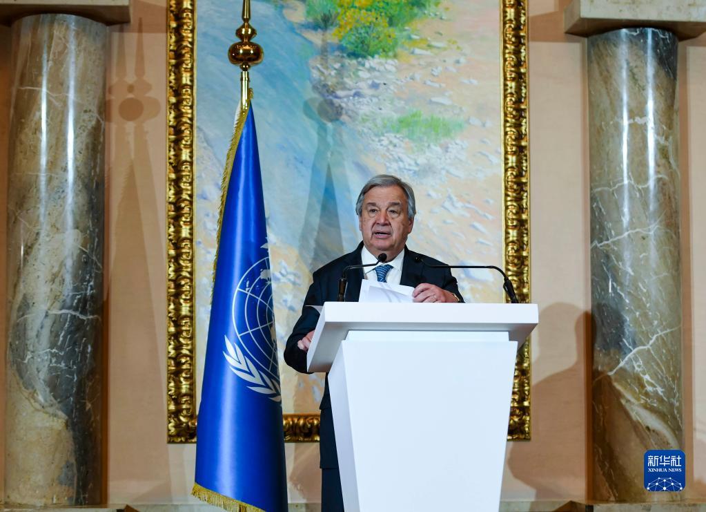 5月2日,聯(lián)合國秘書長古特雷斯在卡塔爾首都多哈發(fā)表講話。